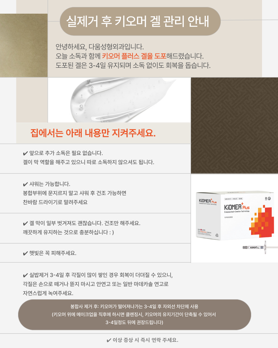 수술 후 키오머 겔 관리 안내